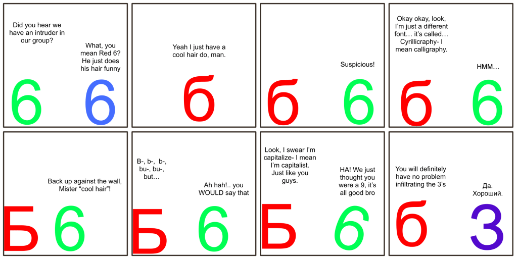 When you see the same person again, it might be time to change tactics.I enjoyed learning some Russian and made a silly comic about their letters that look like numbers
